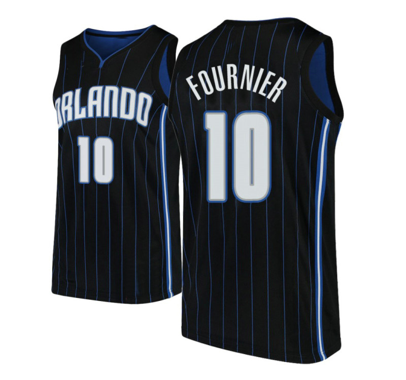 Dominate the court in the Men Pro Basketball 2018-19 Evan Fournier Orlando Magic #10 Statement Black Jersey-a fusion of Orlando's legacy and next-gen firepower. Built with sweat-wicking HexMesh fabric and retro pinstripe detailing, it channels Banchero's rookie dominance while nodding to the Magic's '90s glory days. From the Amway Center roar to neighborhood pickup games, its bold "Magic" chest script and starry shoulder accents ignite nostalgia, yet engineered seams and storm-resistant stitching keep it battle-ready. More than gear, it's a badge of Orlando pride-where Shaq-era swagger meets modern muscle. Own the legacy, stitch by stitch.